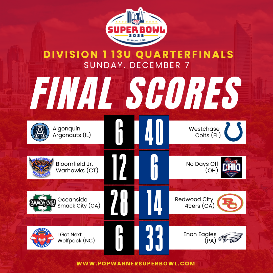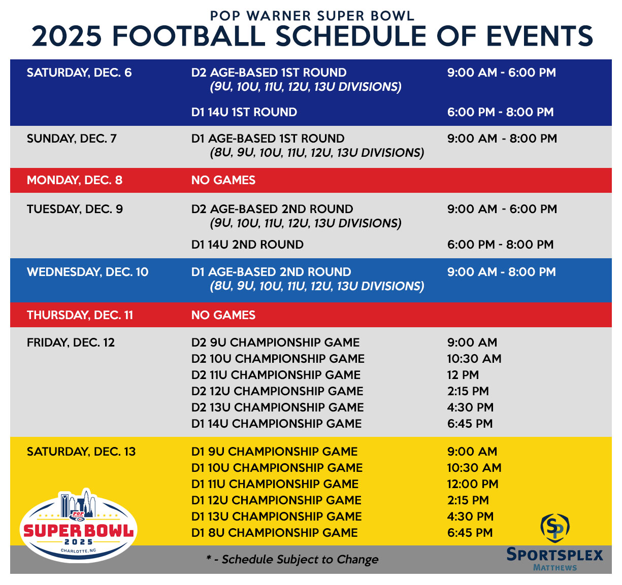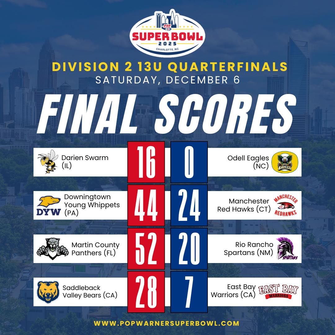 Teams that win their regional championships will advance to the Pop Warner Super Bowl for the opportunity to be crowned national champion in their division of play.