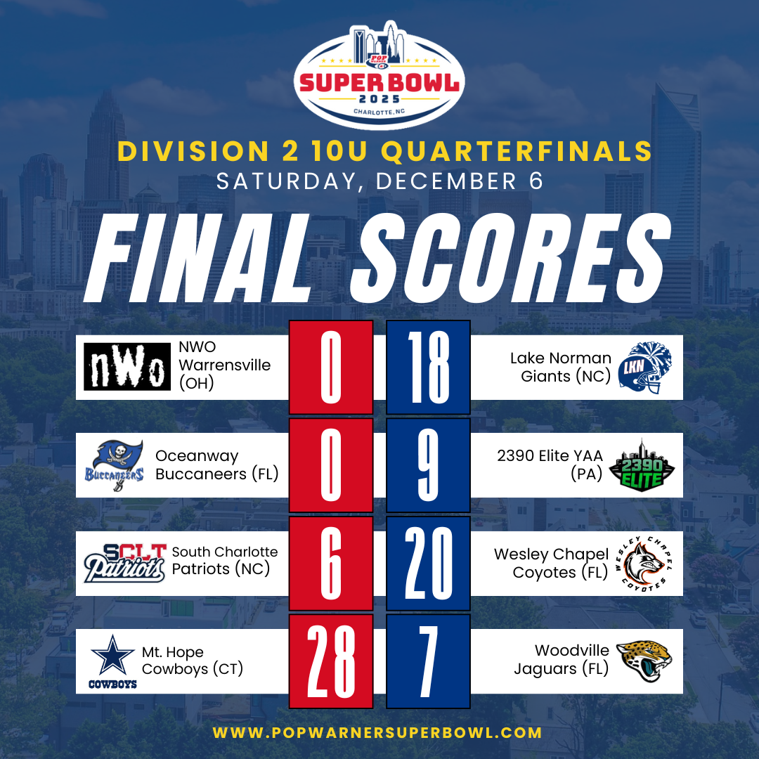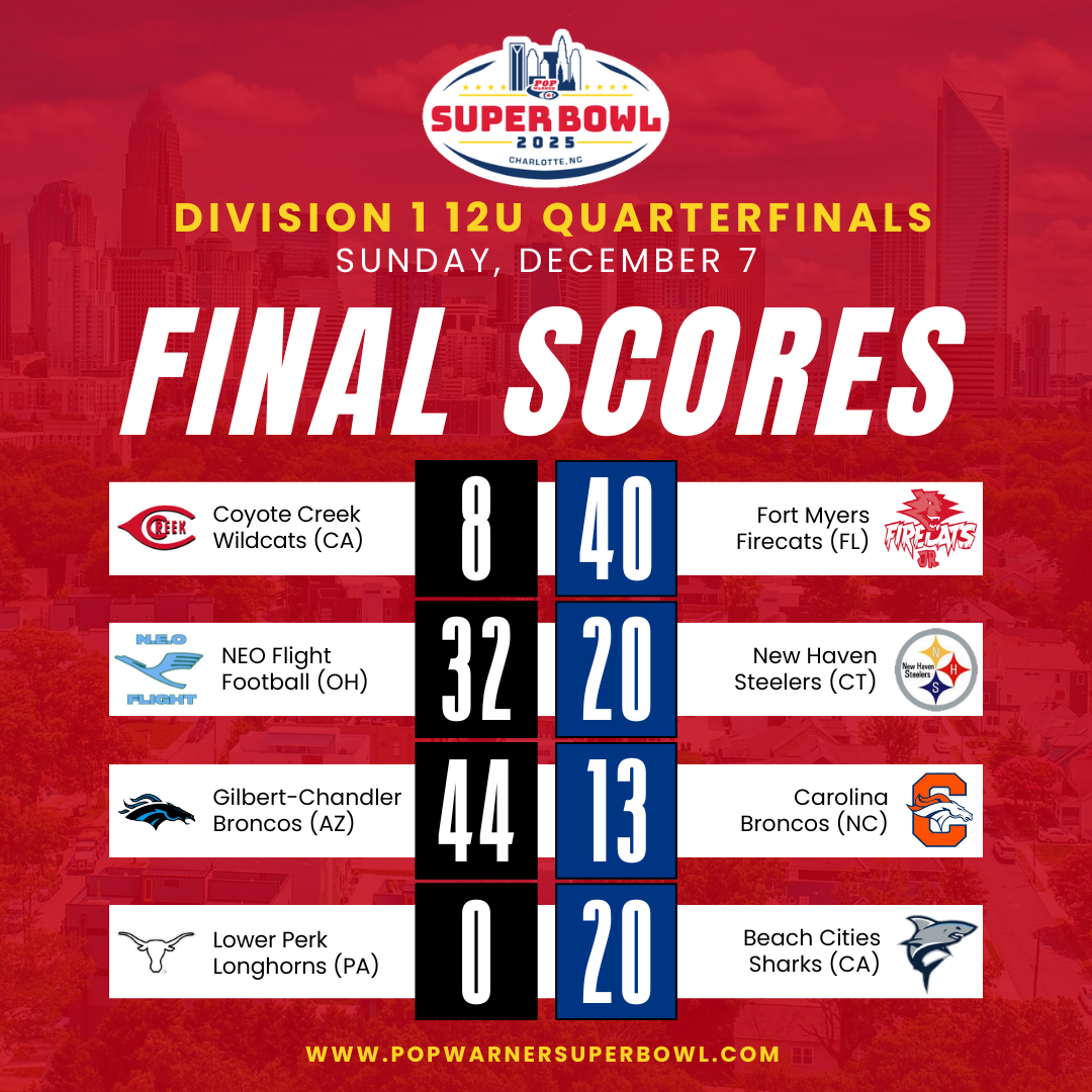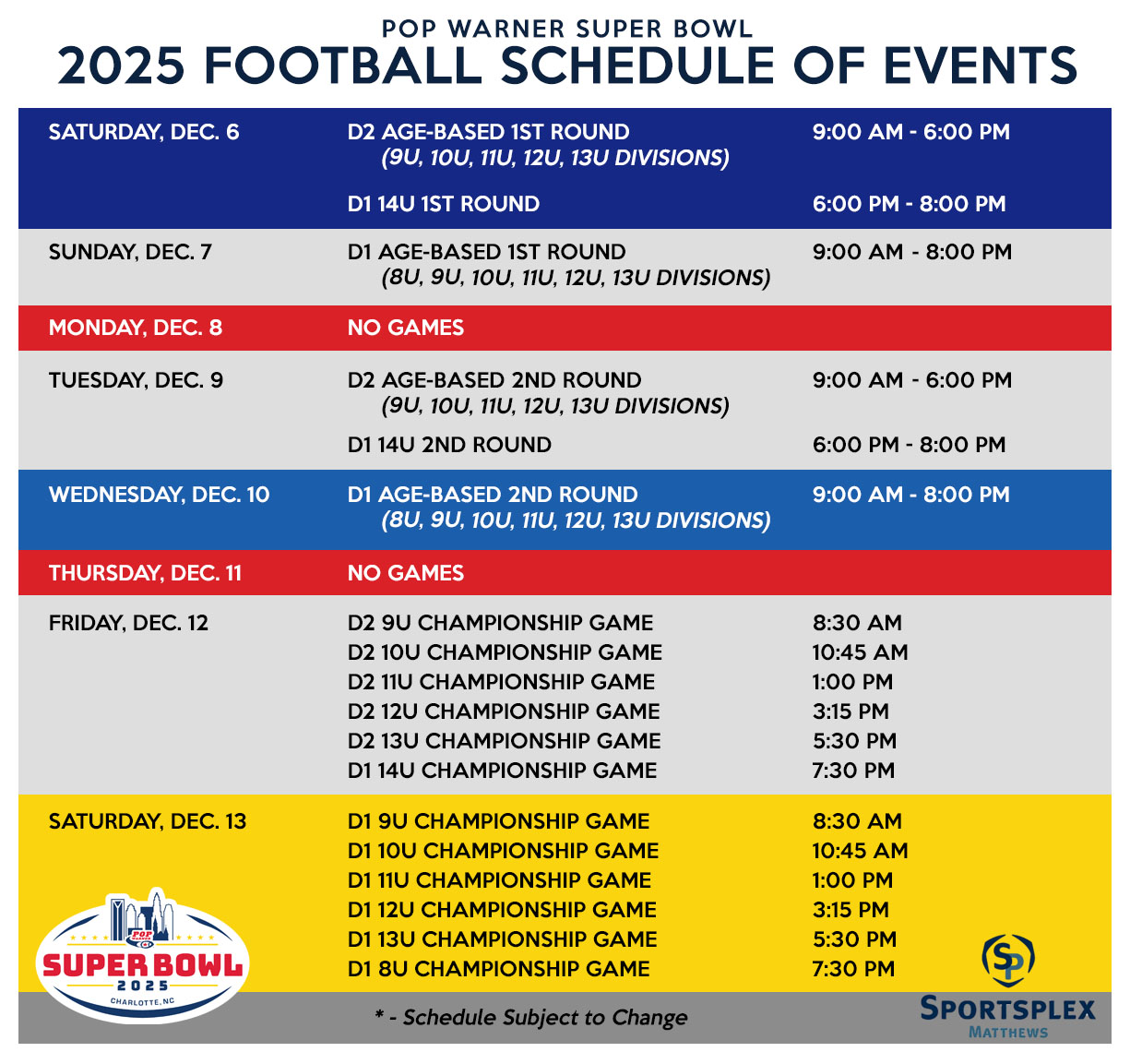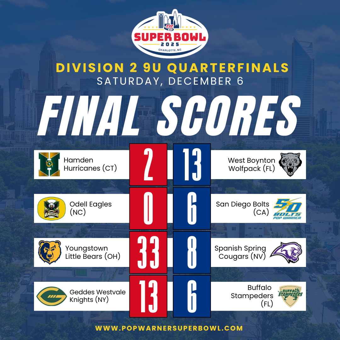 Teams that win their regional championships will advance to the Pop Warner Super Bowl for the opportunity to be crowned national champion in their division of play.