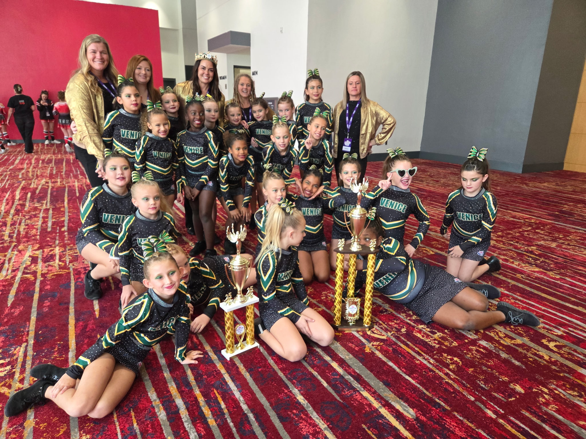Region for this event. It will be the first time all 9 are on the mat at the same time after dealing with injuries throughout the season. Their coaches, especially head coach Darnyel Abreu, are proud of their girls for putting in the hard work and dedication needed to attend the national event with the entire group. They celebrated this milestone by having a team pizza party the night before performing.